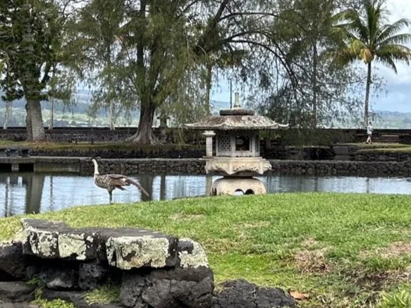 A lantern from Tokyo has stood in this spot, in Waihonu, since the beginning of the park. This gift of Tokyo in the late 1960s replaced one broken and lost in the tsunami of 1960.