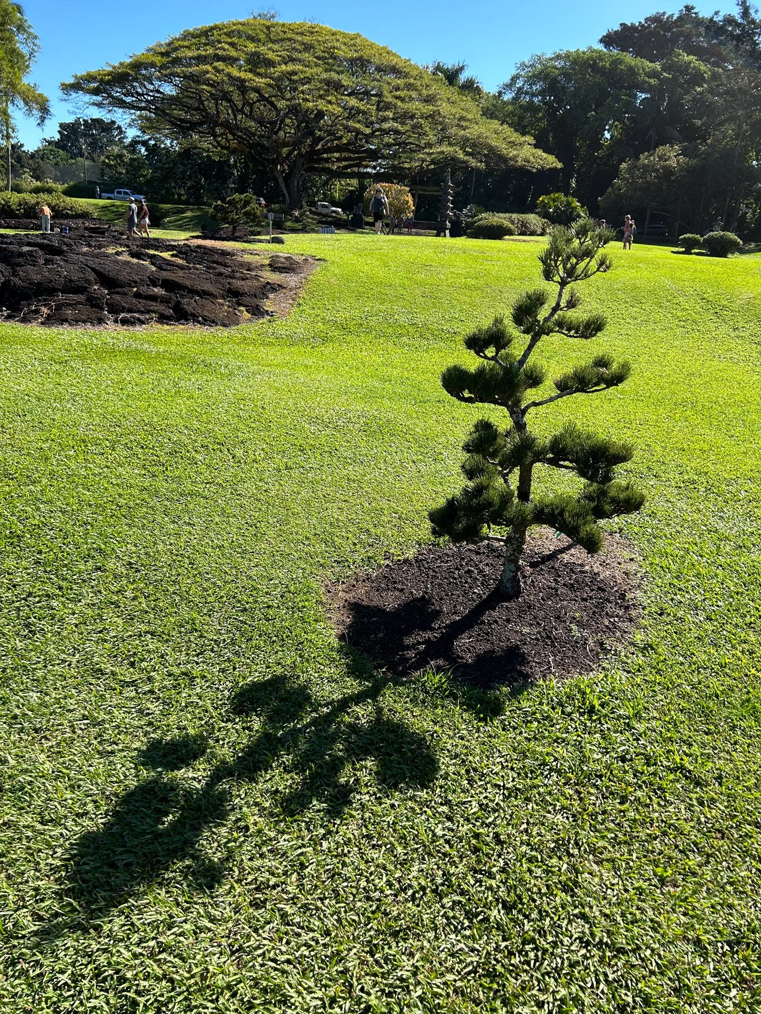 The Sister City Grove began in 2015 with this planting of a black pine tree by Hiroshima South Rotary and Hilo Rotary.